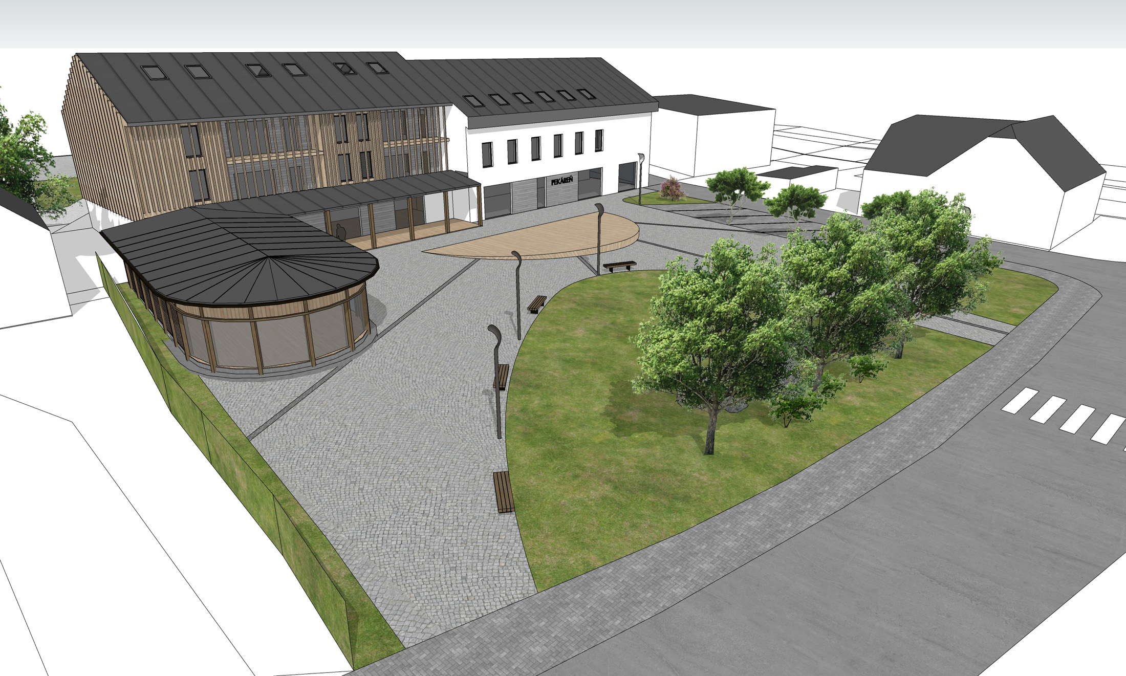 Predstavujeme vám novú plánovanú štúdiu realizovateľnosti obnovy budovy „pekárne“ v centre obce, kde by mohol vyrásť nový priestor na oddych, prípadne obchodné priestory a samozrejme aj ďalšie nové byty. Štúdiu realizovateľnosti vypracoval pán architekt Ivan Jarina, ktorý navrhol rôzne zaujímavé objekty na Kysuciach.
