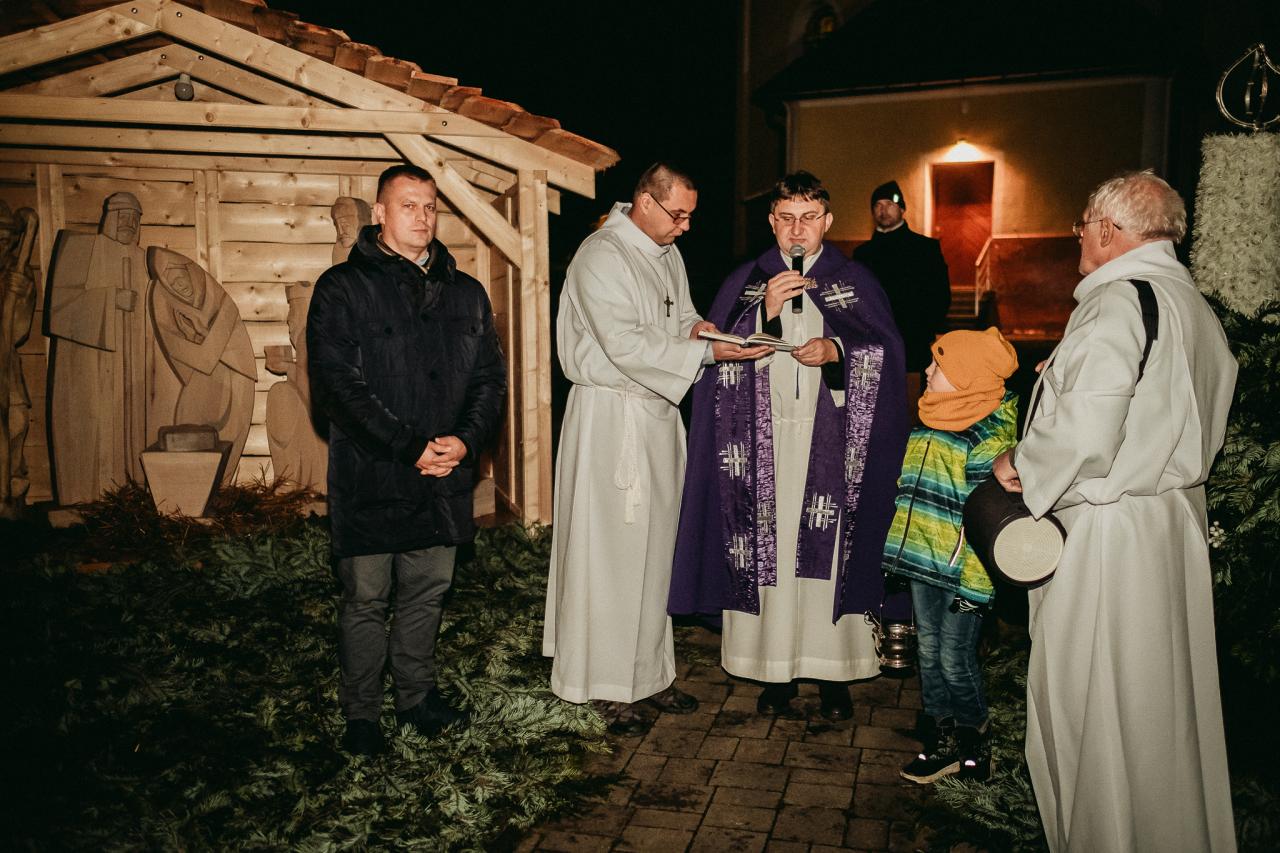 Po príhovore p. starostu PaedDr. Jozefa Cecha a príhovore p. farára Jozefa Možiešika, p. farár požehnal Betlehem a nový adventný veniec.