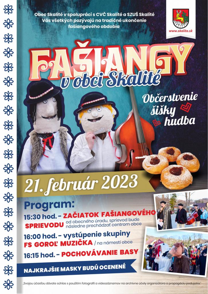 Budeme sa veľmi tešiť, ak sa pripojíte k fašiangovému sprievodu v maskách, ktorý pôjde od obecného úradu a následne bude prechádzať centrom obce Skalité.