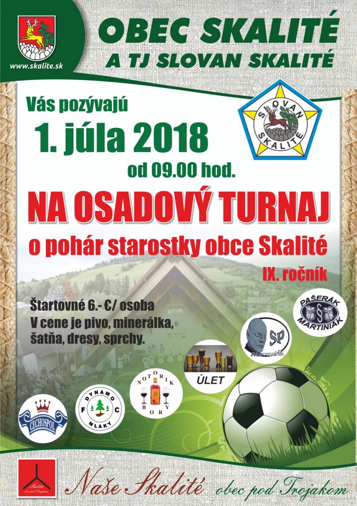 TJ Slovan Skalité a Obec Skalité, Vás srdečne pozývajú na IX. ročník futbalového osadového turnaja o pohár starostky obce. Viac o turnaji sa dočítate na priloženom plagáte a v propozíciách turnaja.
