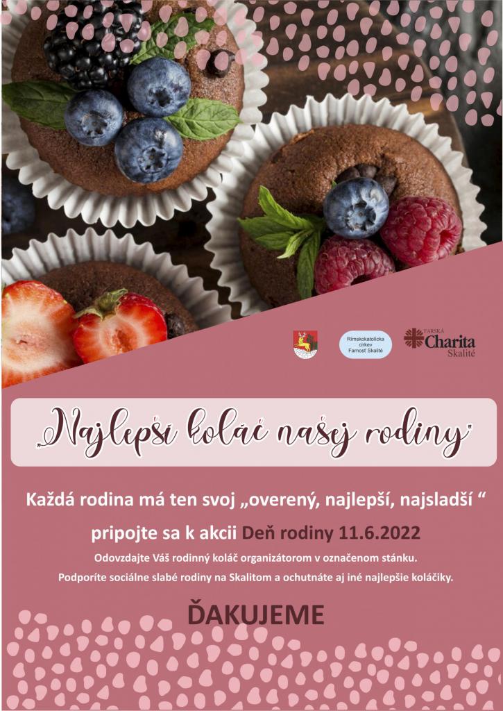 Prineste svoj obľúbený rodinný koláč do označeného stánku. Na oplátku ochutnáte najlepšie koláčiky z iných rodín ale hlavne pomôžete sociálne slabším rodinám na Skalitom.