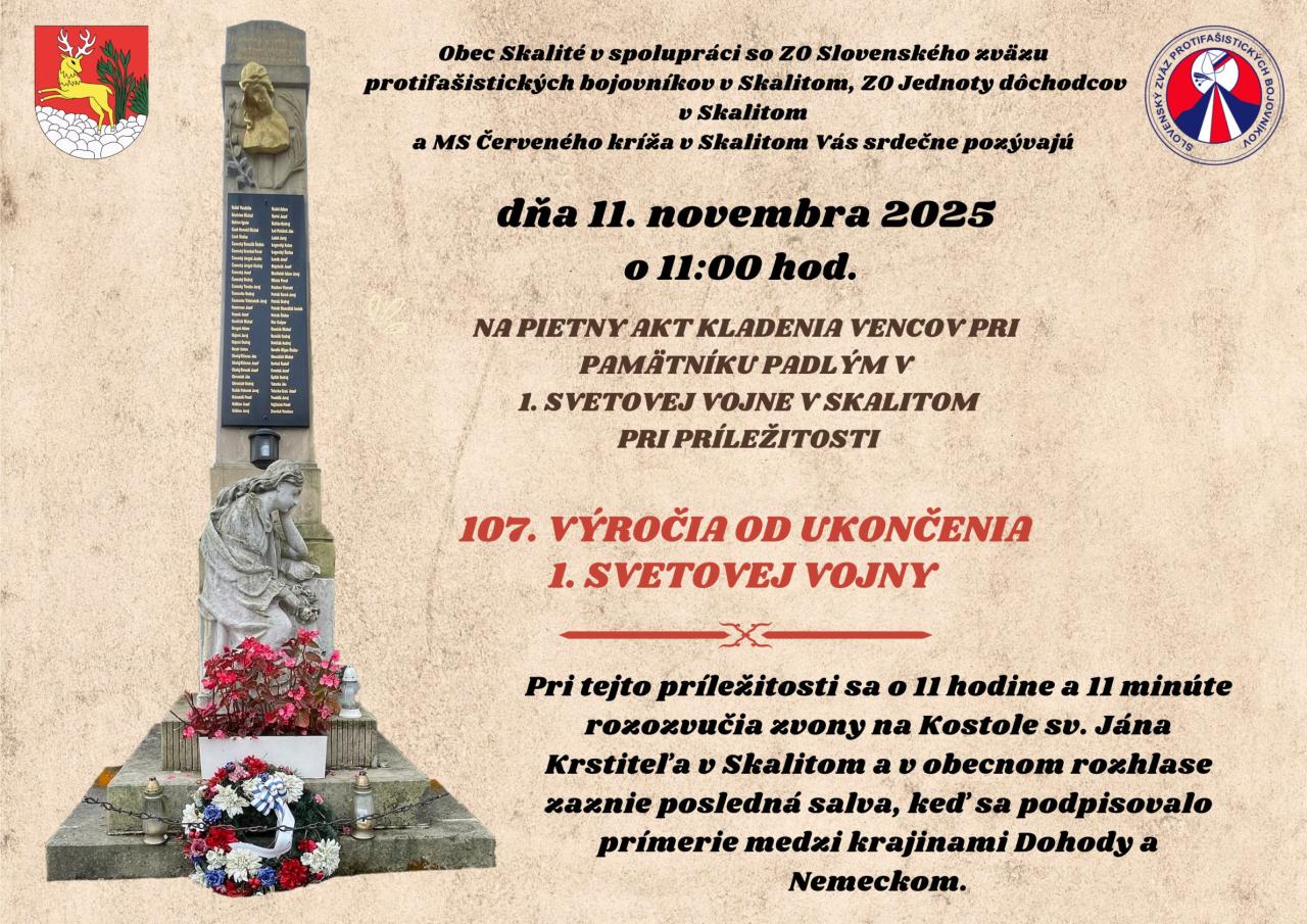 na pietny akt kladenia vencov pri Pamätníku padlým v 1. svetovej vojne v Skalitom pri príležitosti