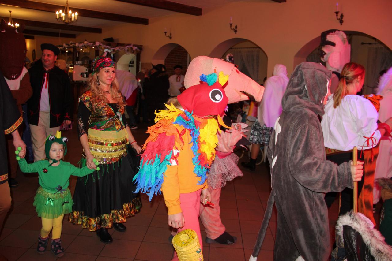 Samozrejmosťou bol sprievod žartovných masiek, ktorý tentokrát začínal už od CVČ a pokračoval obcou po ceste až k hotelu Koloniál. Prítomní sa tak mohli pokochať maskami, medzi ktorými nechýbal medveď, veverička, cigánky, kohút a sliepočka, kravička, kôň, prasiatko, šašo a mnoho iných fašiangových masiek.