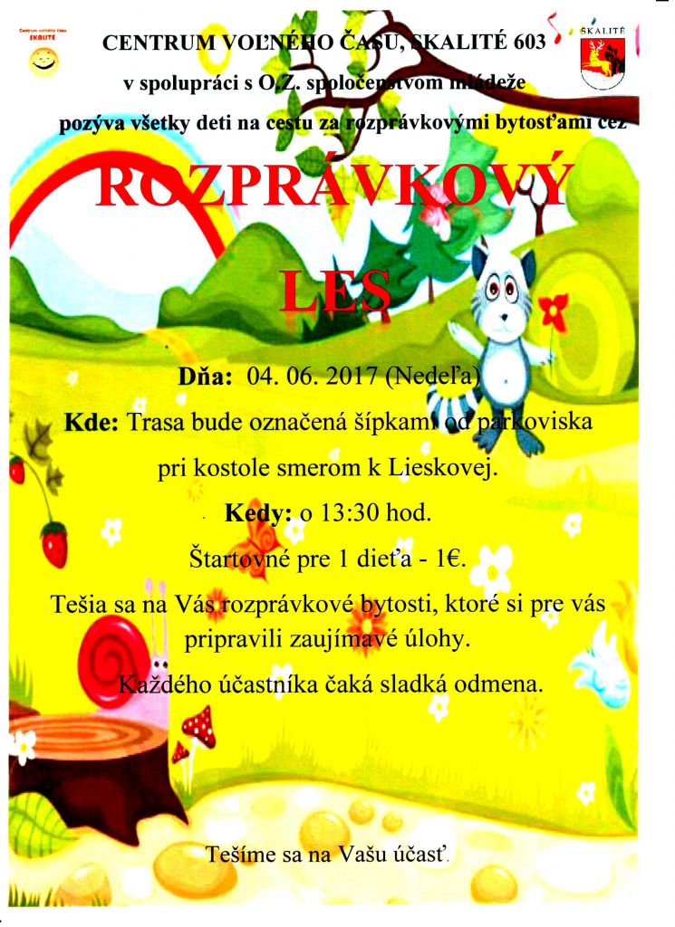 Centrum voľného času Skalité v spolupráci so spoločenstvom mládeže o.z., pozýva všetky deti na rozprávkový les. Viac o akcii na plagáte.