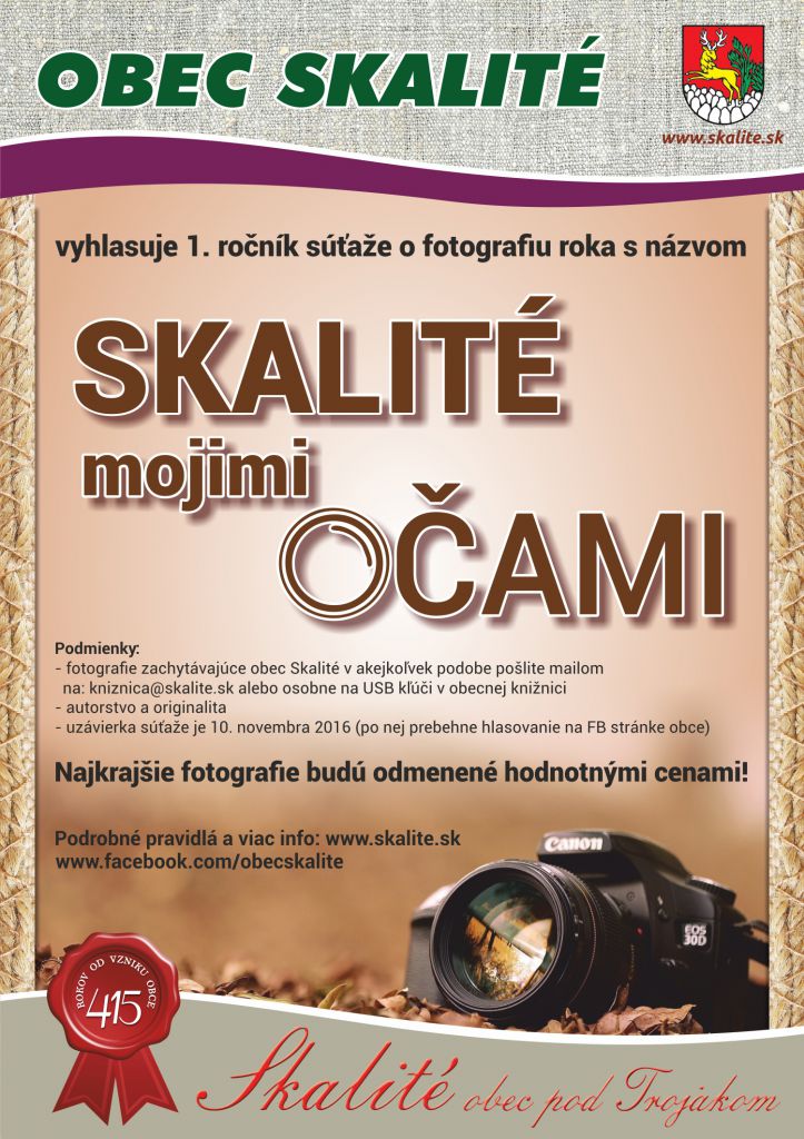 -fotografie zachytávajúce obec Skalité v akejkoľvek podobe pošlite mailom na: kniznica@skalite.sk, alebo osobne na USB kľúči do obecnej knižnici Skalité
