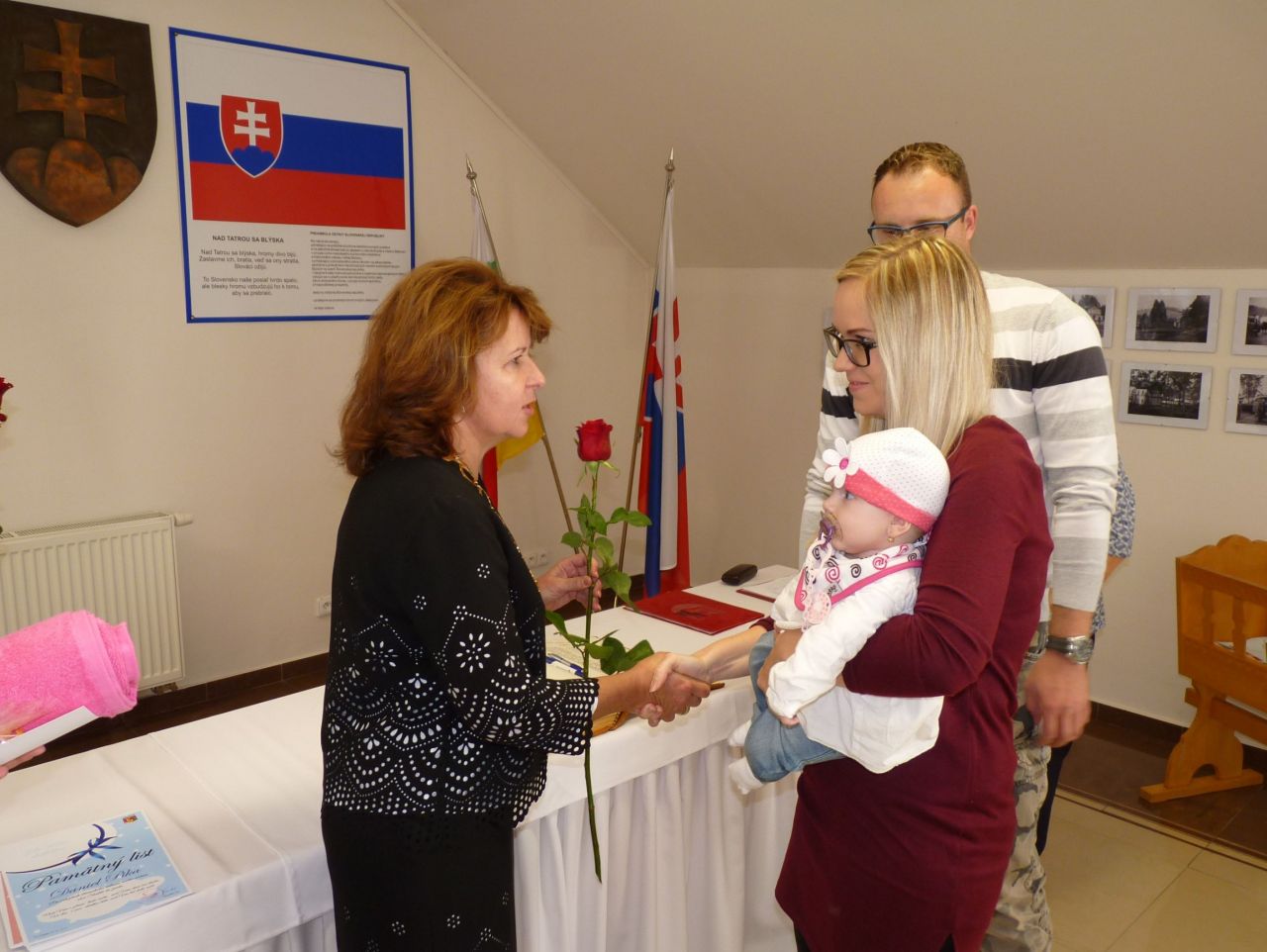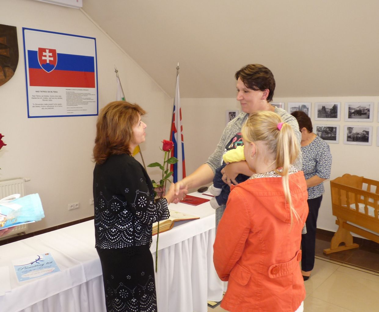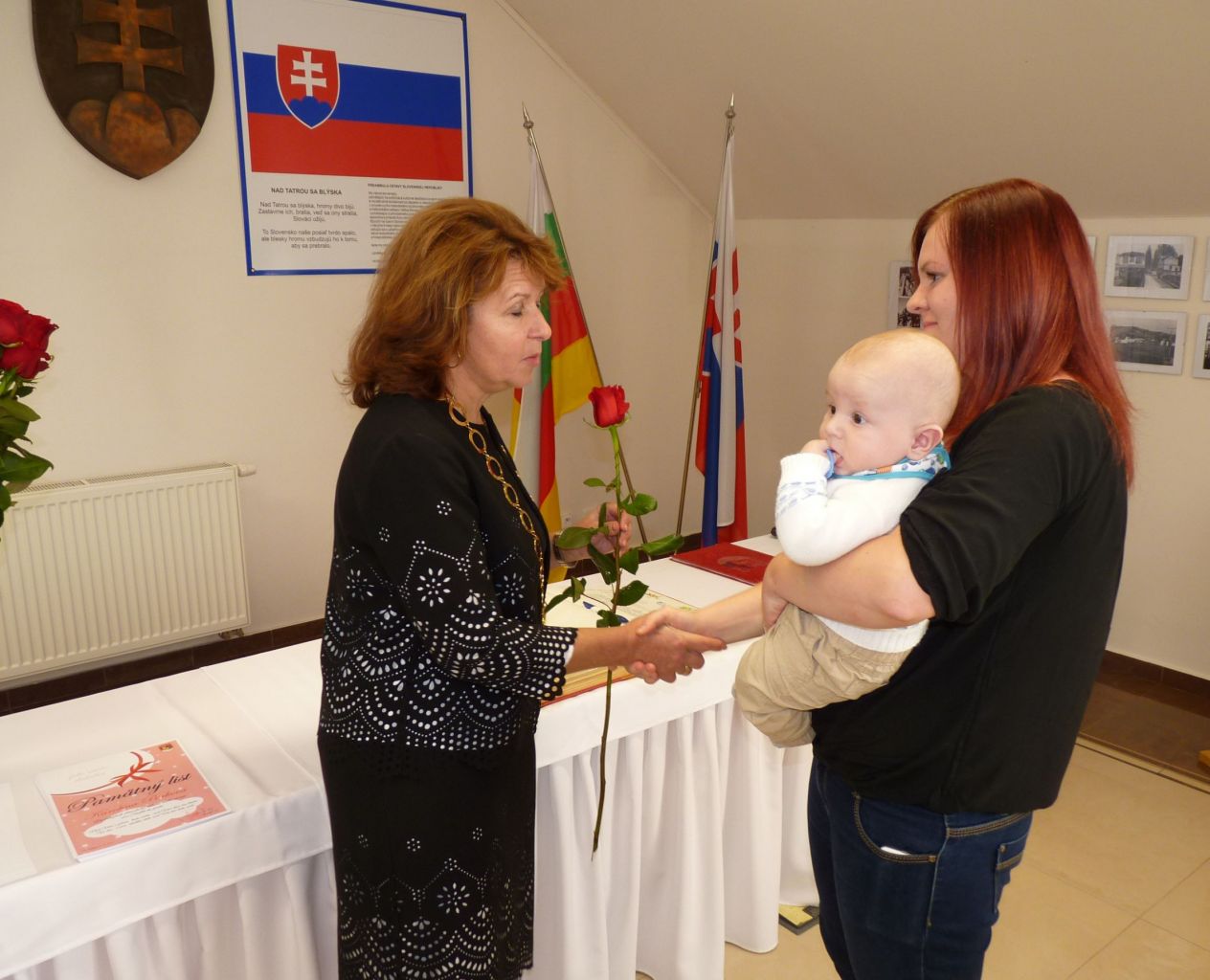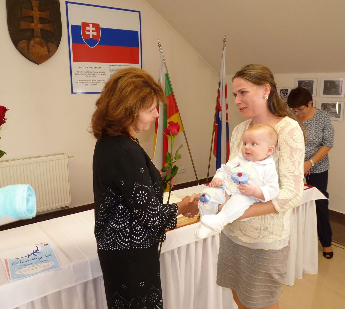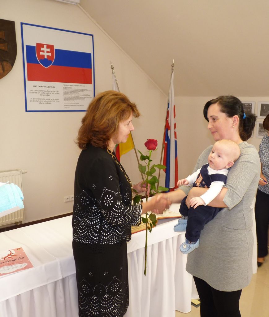 p. PaedDr. Andrea Šimurdová. Rodičom zaželala veľa síl a trpezlivosti pri výchove svojich ratolestí, aby deťom vytvorili šťastný domov, kde sa dieťatko bude cítiť dobre a bezpečne, kam sa bude vždy rado vracať. Následne si prítomní z jej rúk prevzali malý darček a samozrejme kvety pre mamičky. Atmosféru slávnosti obohatili kultúrnym programom deti