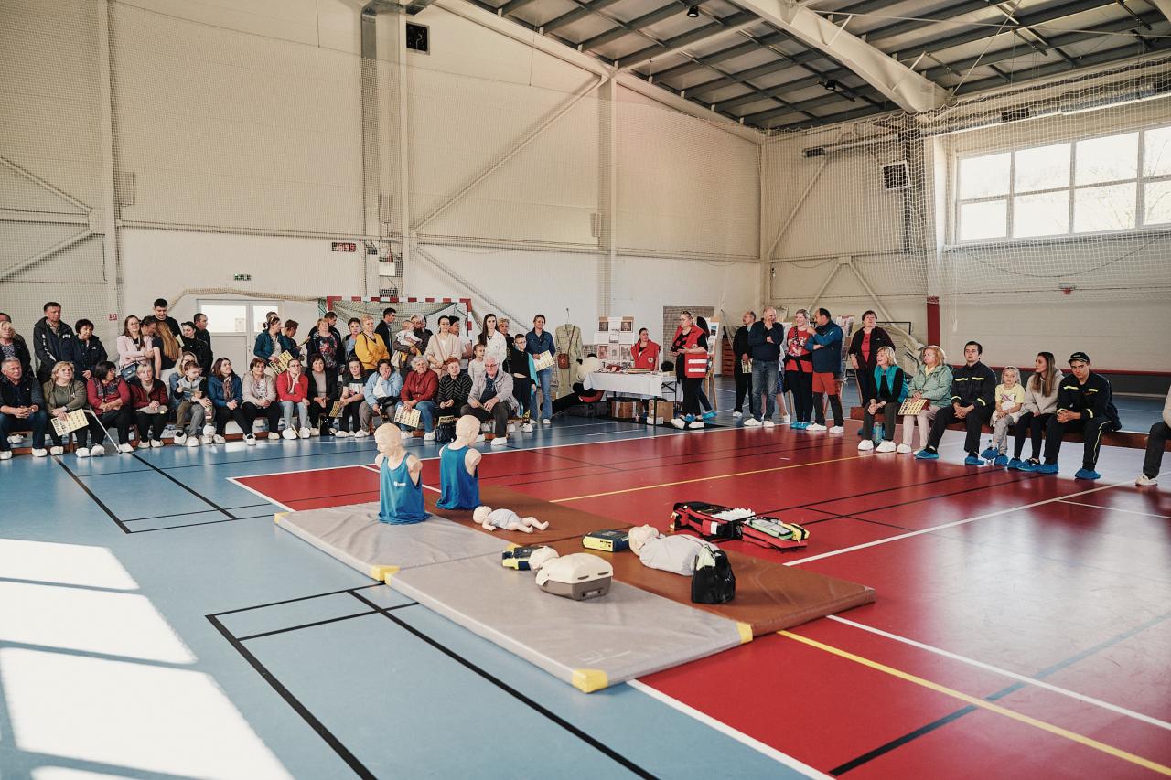 Prednášajúci obšírne vysvetlil a názorné ukázal ako majú ľudia poskytnúť prvú pomoc.